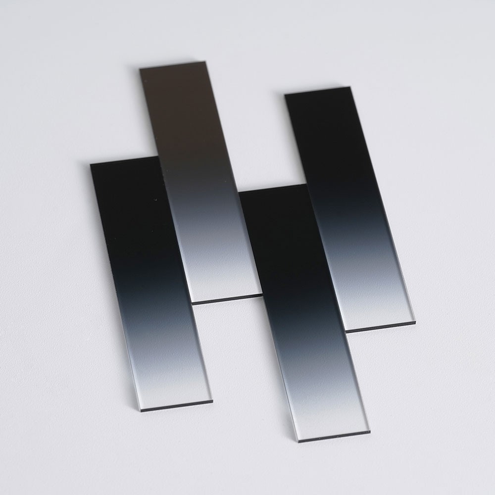 條形漸變中性密度濾光片作為一款具備獨特條形漸變結構的光學元件,作為中性密度濾光片家族的創新成員,它提供了光密度沿單一方向(如水平、垂直)線性變化,其核心特色在于特定條形方向上透光率呈現線性漸變分布。從濾光片的一端到另一端,透光率按照預設的線性規律逐漸變化,這種設計為光學系統提供了更靈活、精準的光強調控方案。